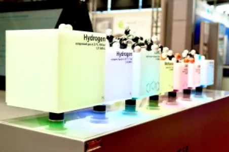 At the World Hydrogen 2026 Fraunhofer ISE’s PtX Cube displays different hydrogen-based energy carriers in terms of their relative energy density compared to non-pressurized and compressed hydrogen.