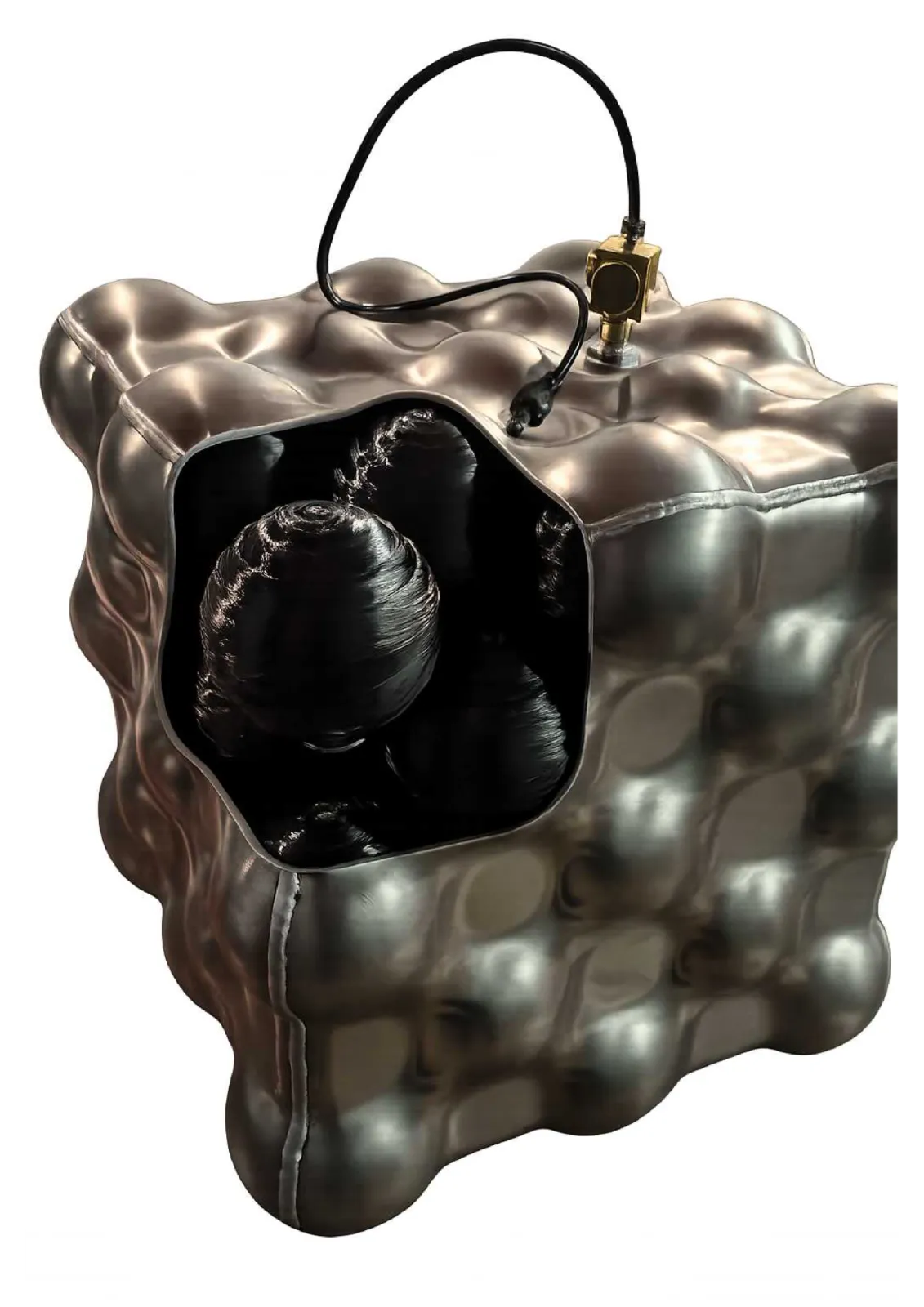 Core of the system are the spherical Type IV high-pressure vessels (SFEERs) made of a polymer liner and carbon-fiber overwrap, specifically designed for maximum packing density within the overall system layout. The specially developed geometry of the form-optimized aluminum housing enables an integration of the SFEERs for high volumetric storage efficiency and good structural stability. The system is further complemented by revolutionary microvalves that integrate all essential storage system functions—such as pressure reduction, inlet and outlet control, and safety features—within a 4 × 4 mm silicon chip. In addition, the exhibit demonstrates a novel high- and low-pressure gas distribution system as well as a simple quick-coupling interface for the modular interconnection of storage elements. The uniqueness of the H2 Battery is obvious:
